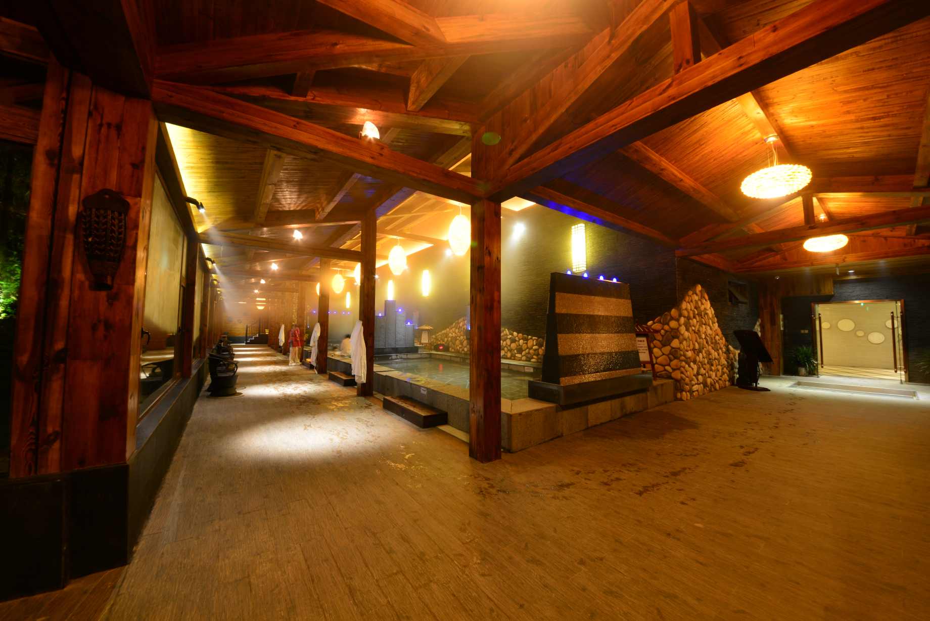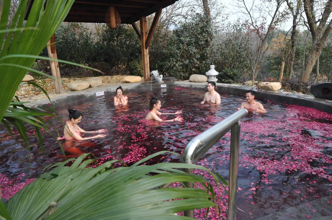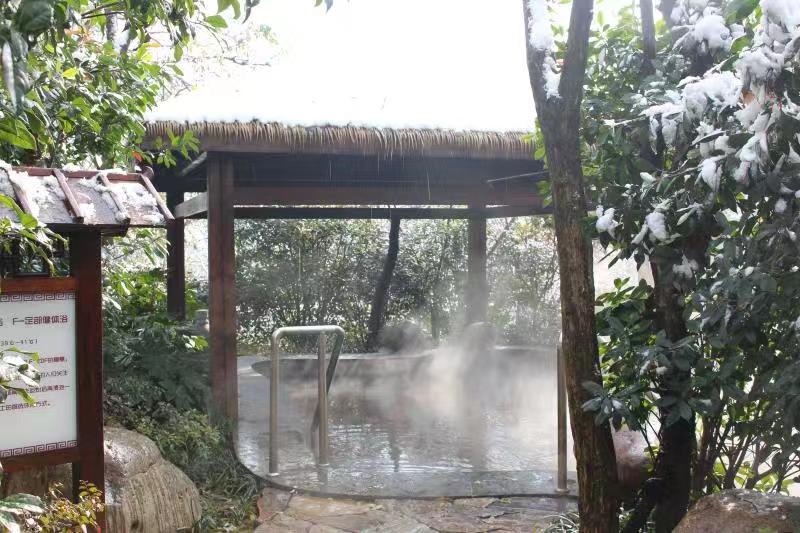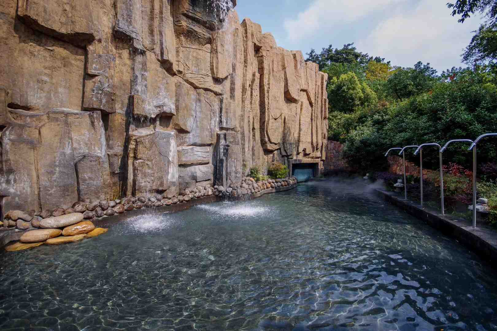 紫清湖森林温泉,引“居中国四大温泉疗养区之首,中国唯一获得欧洲、日本温泉水质国际双认证”的汤山温泉,含硫磺、钙、镁、钾、钠等多种化学物质,有瀑布池、矿砂浴、石板浴及亲亲鱼疗池等 30 种功能形态各异的泡池。温泉依山傍水而建,户外温泉池掩映在郁郁葱葱的森林之中,让泡汤更具私密与放松。